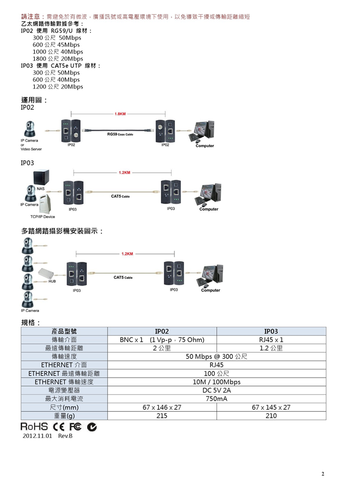 IP02 主動式乙太網路延長器 網路傳輸解決方案