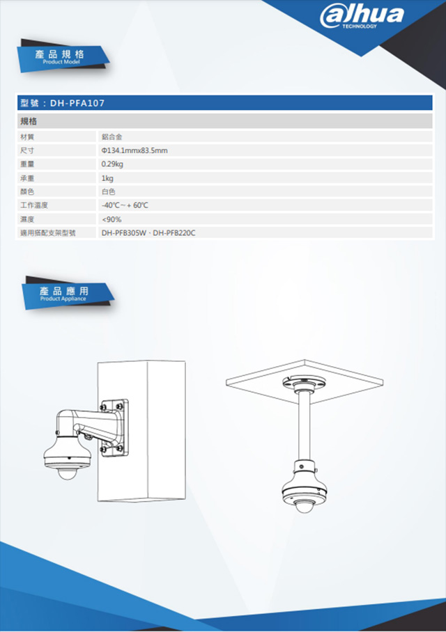 大華 DH-PFA107 球機轉接固定架