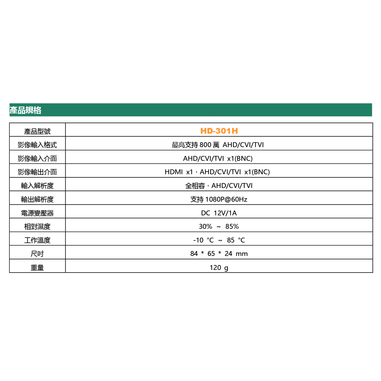 -可將一路AHD/CVI/TVI 訊號轉換為一路HDMI訊號,同時輸出AHD/CVI/TVI訊號放大環出可接監控主機