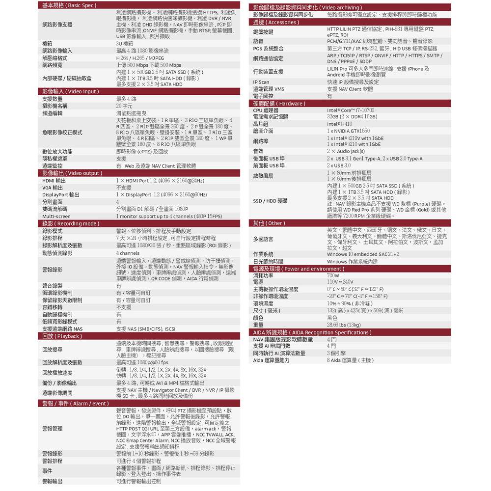 -內建 1 × 1TB 3.5吋 SATA HDD (錄影)