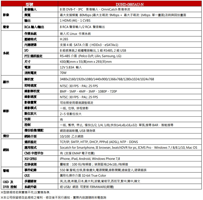 .H.265 高效能壓縮格式:畫質清晰、傳輸速率快、儲存時間增長節省硬碟建置成本 。