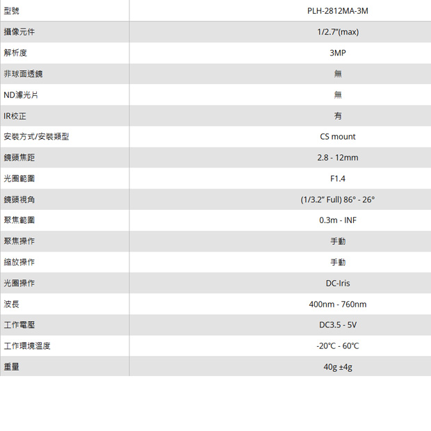 LILIN 利凌 PLH-2812MA-3M 鏡頭 2.8-12mm, 3MP