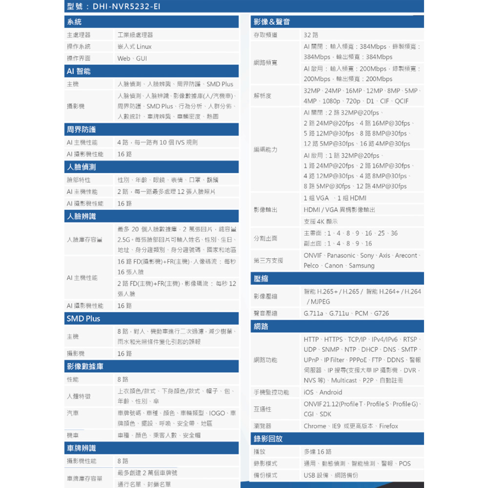 • 大華dahua監視器主機32路(DHI-NVR5232-EI)網路型錄影主機
