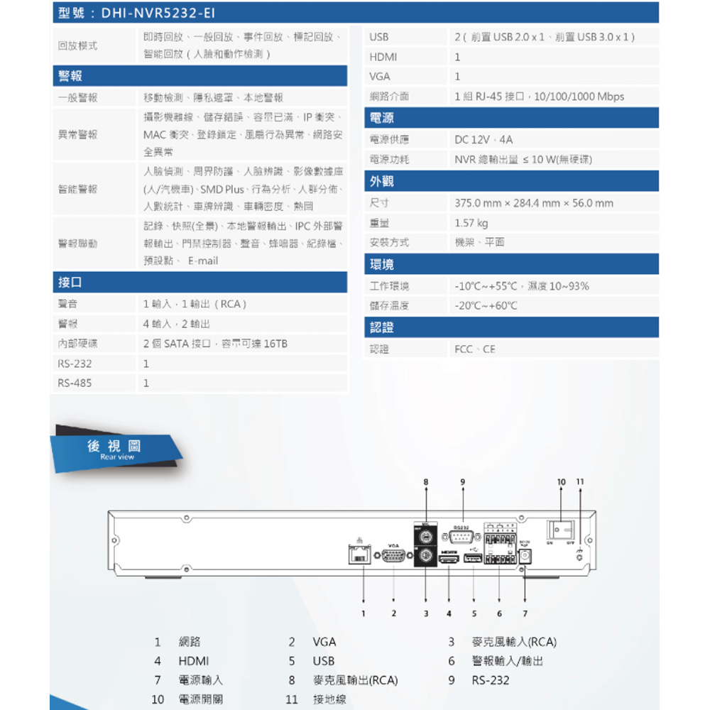 • 大華dahua監視器主機32路(DHI-NVR5232-EI)網路型錄影主機 1