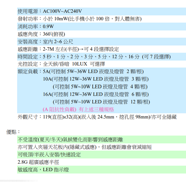 感應距離:2-7M左右(半徑)可4段選擇設定