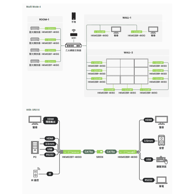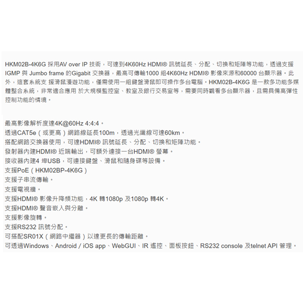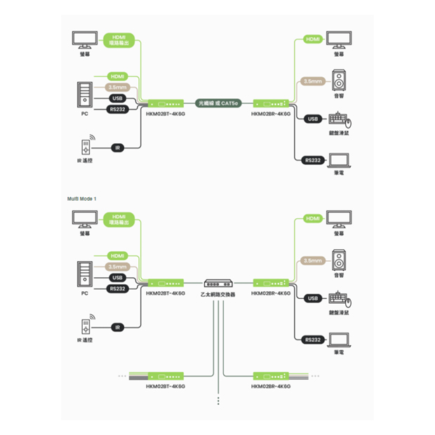 搭配網路交換器使用,可達HDMI 訊號延長、分配、切換和矩陣功能。