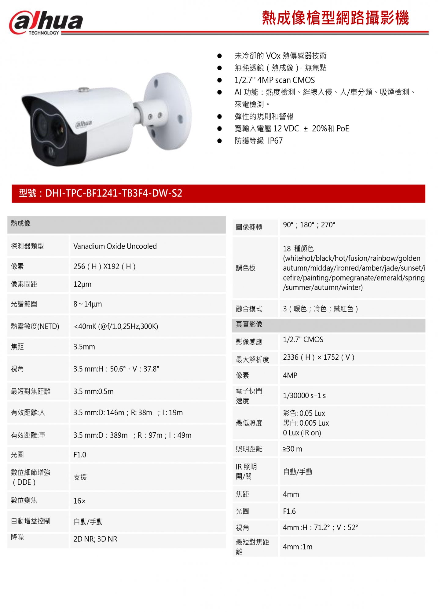 ⚫ AI 功能:熱度檢測、絆線入侵、人/車分類、吸煙檢測、來電檢測。
