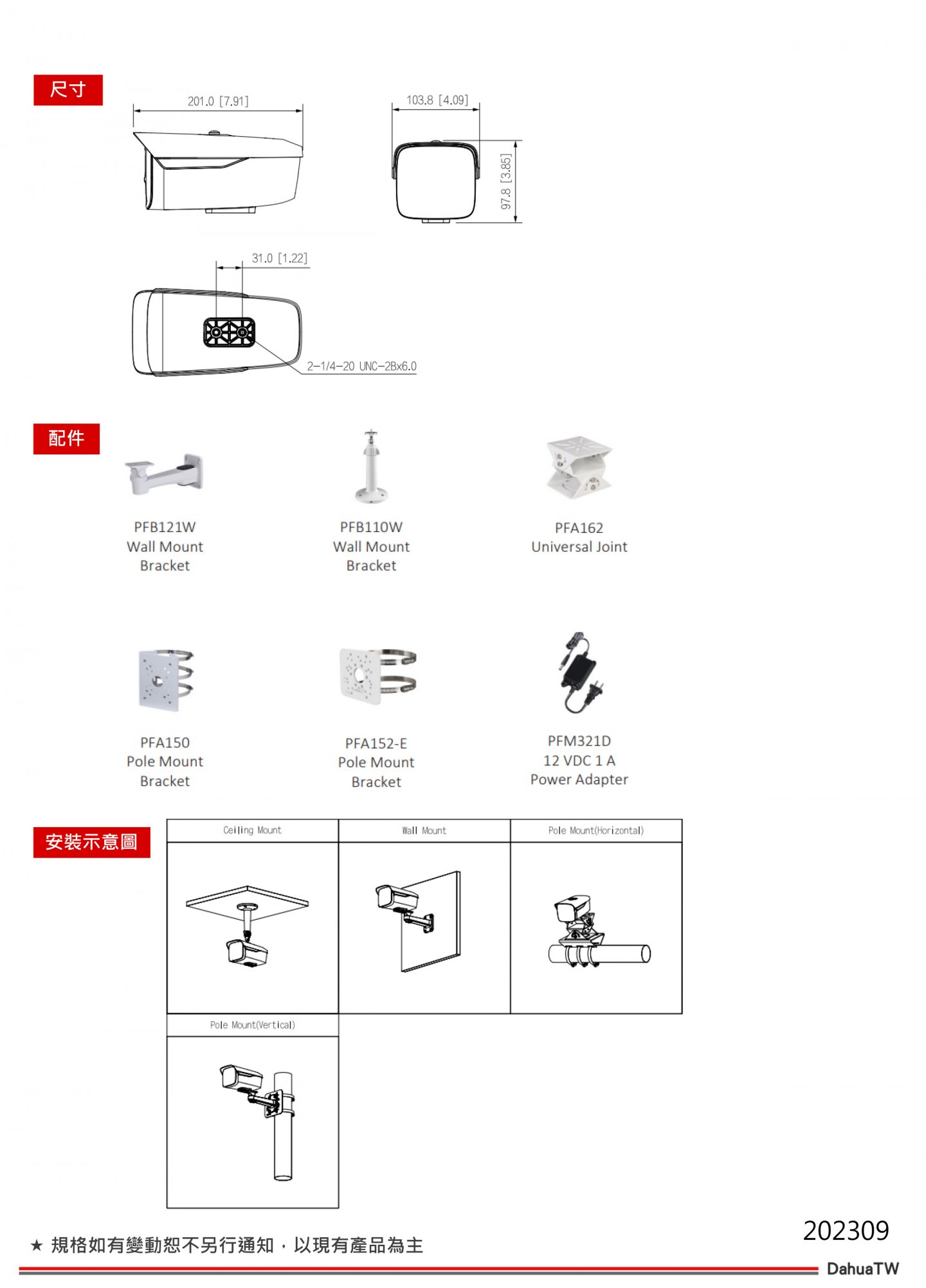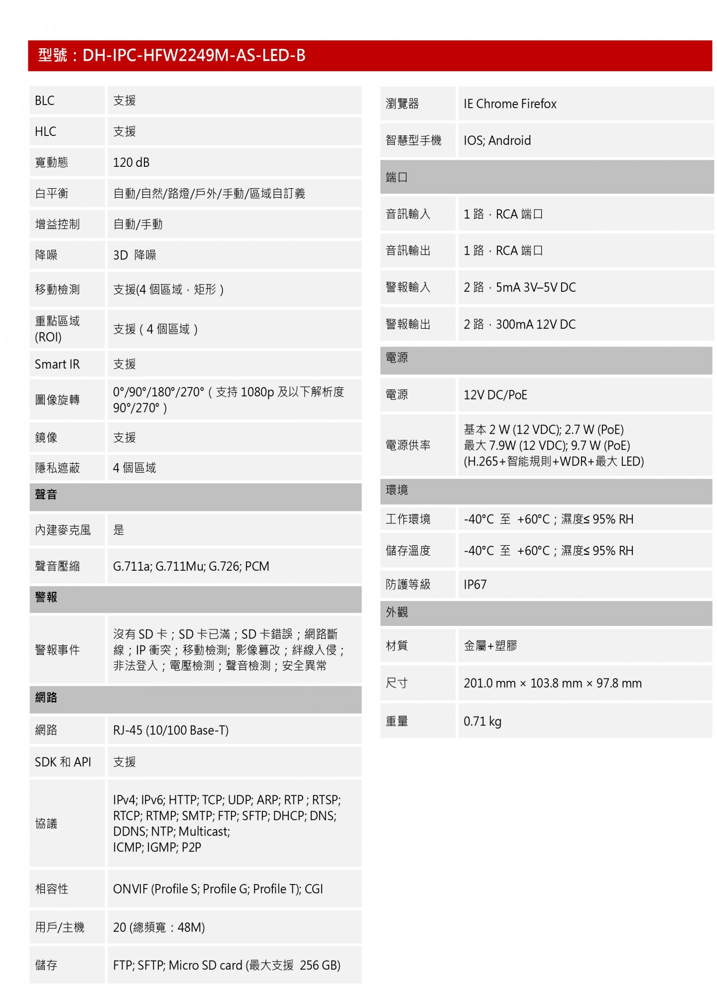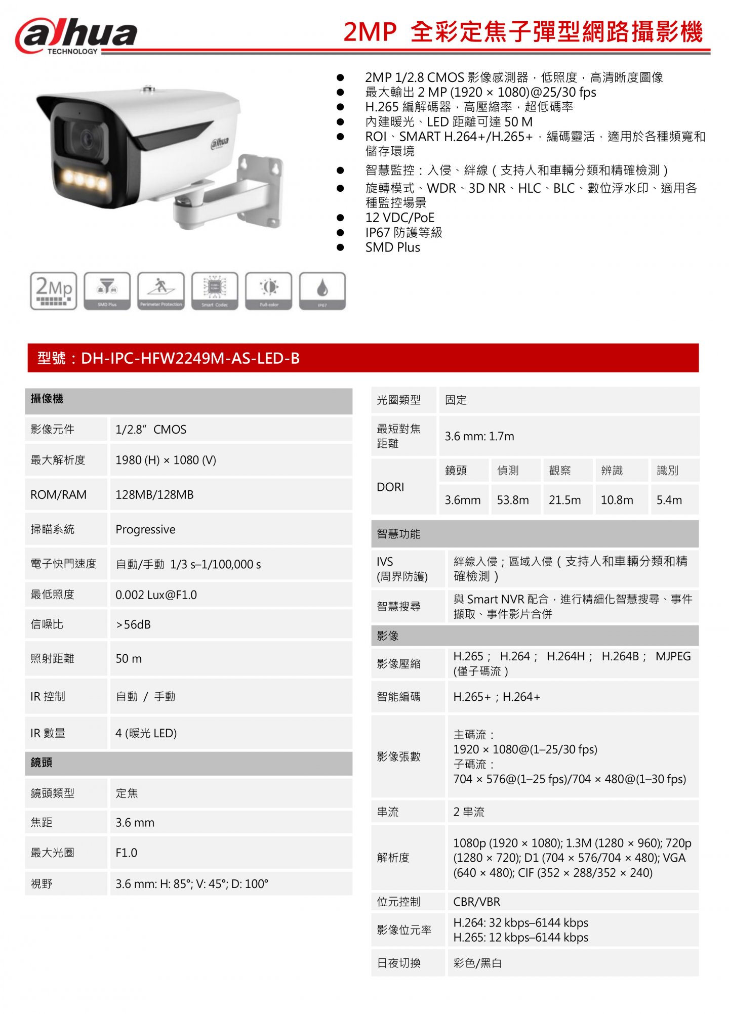 2MP 1/2.8 CMOS 影像感測器,低照度,⾼清晰度圖像最⼤輸出 2 MP (1920 × 1080)@25/30 fps