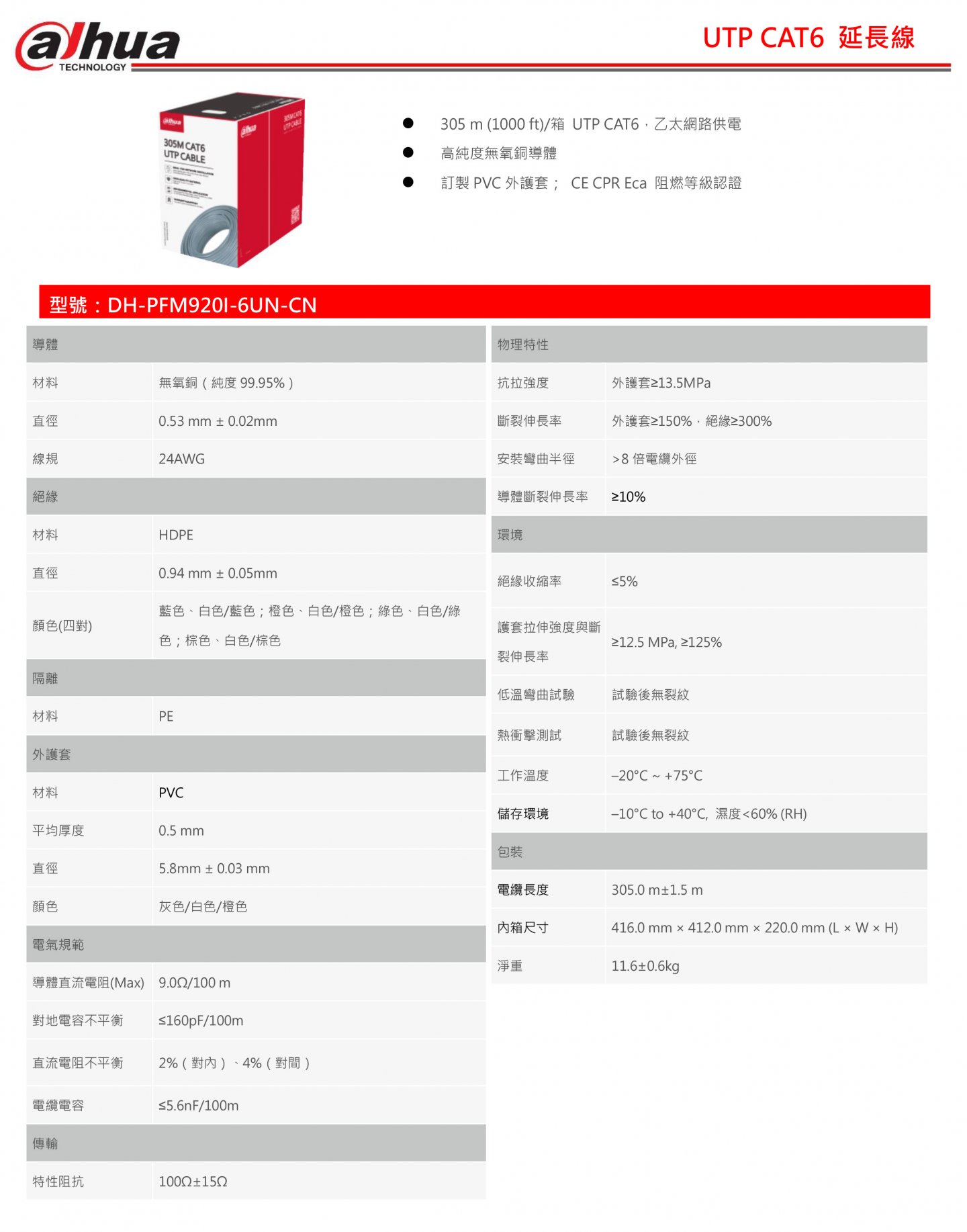 大華dahua DH-PFM920I-6UN-CN UTP CAT6 延長線