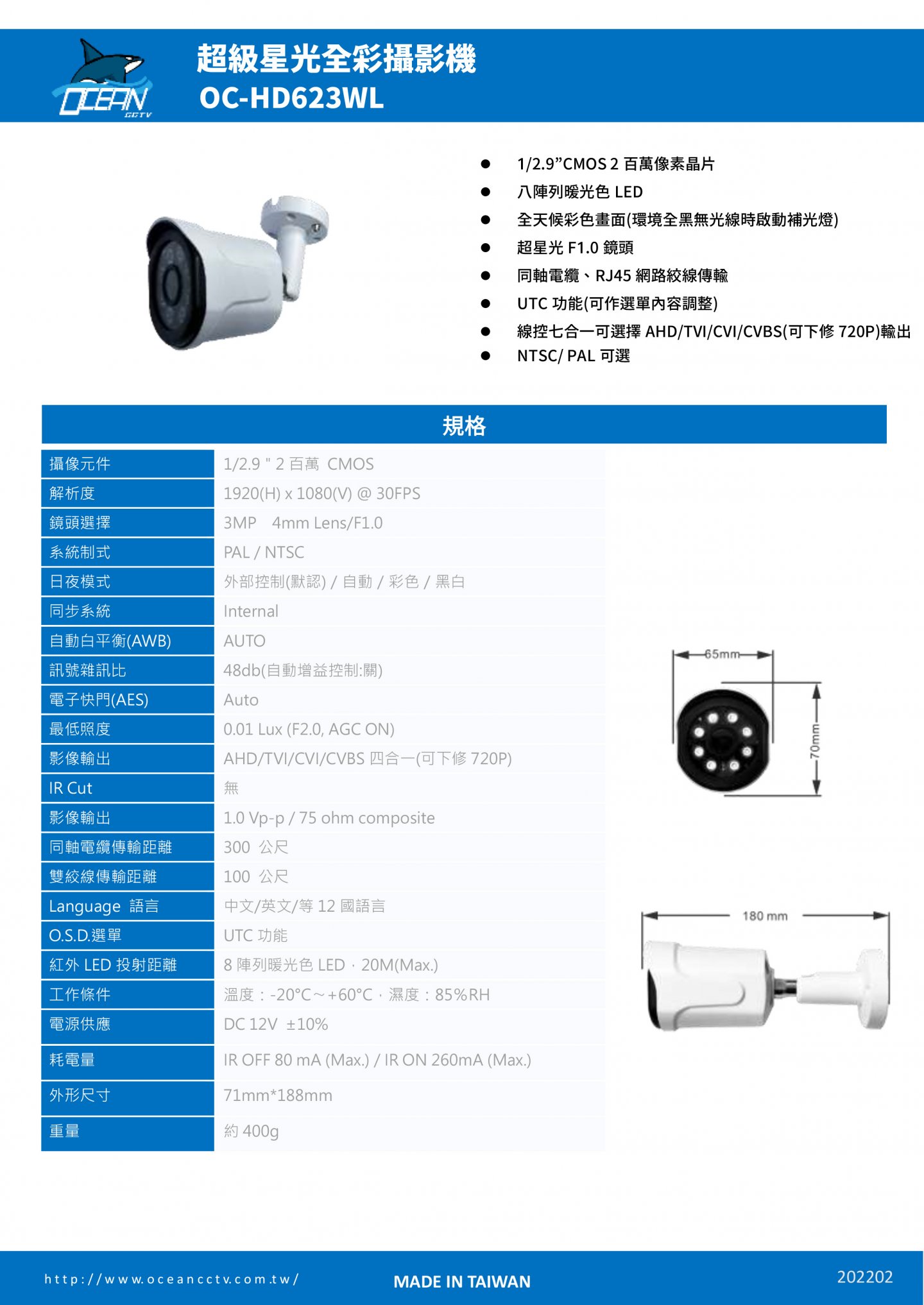 ▶ 1/2.9”CMOS 2百萬像素晶片
