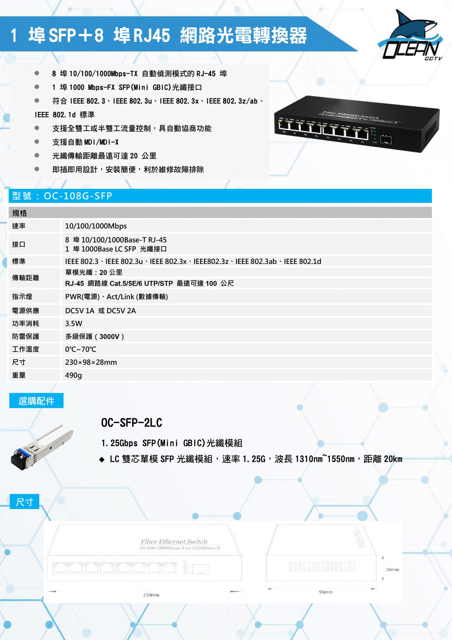 ▶ 1 埠1000 Mbps-FX SFP(Mini GBIC)光纖接口