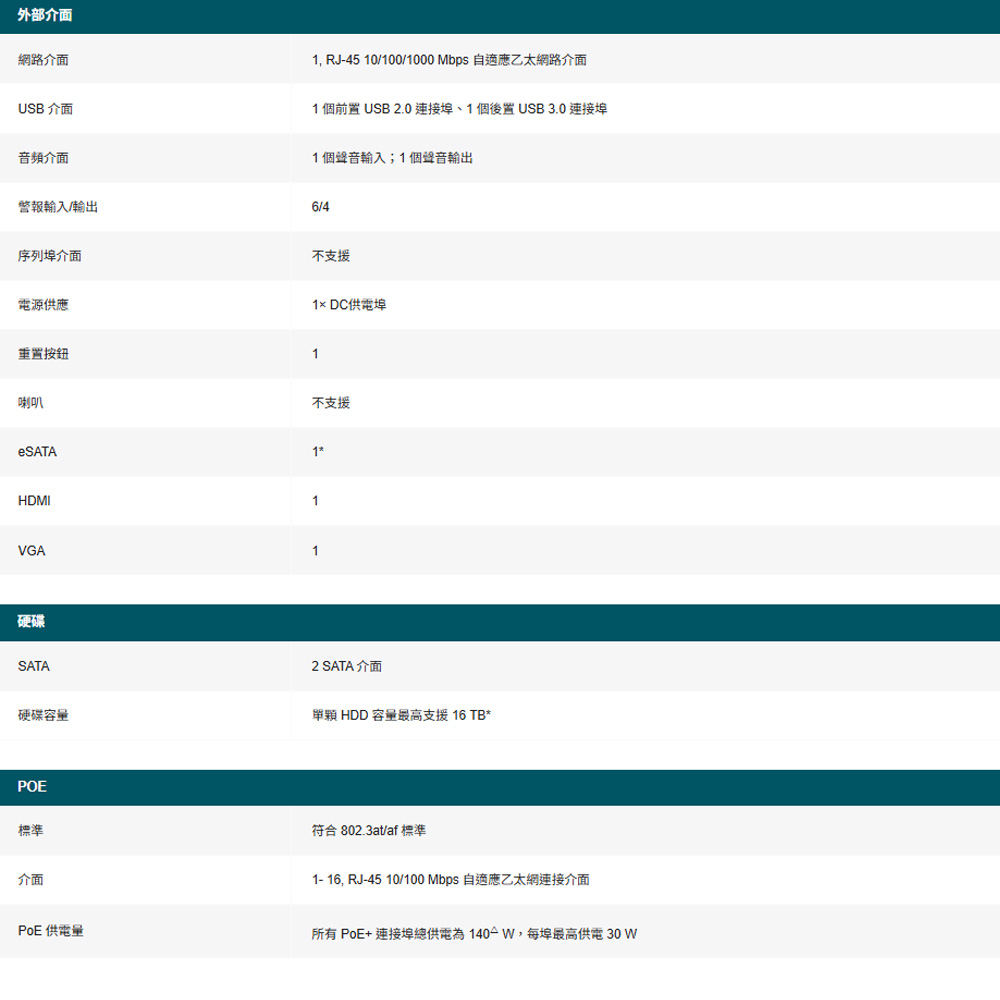 2× SATA 介面,最高支援 16 TB*