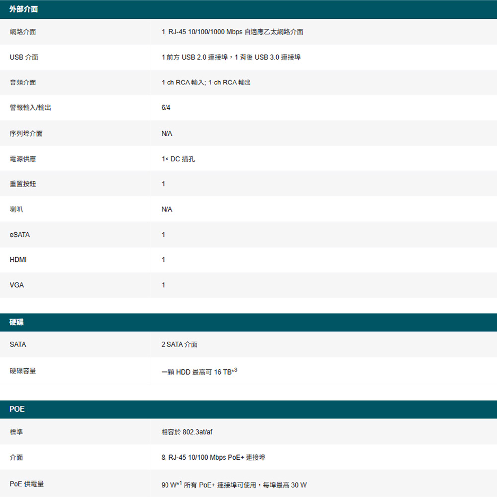 2× SATA 介面且 1 個最高支援 16 TB*3