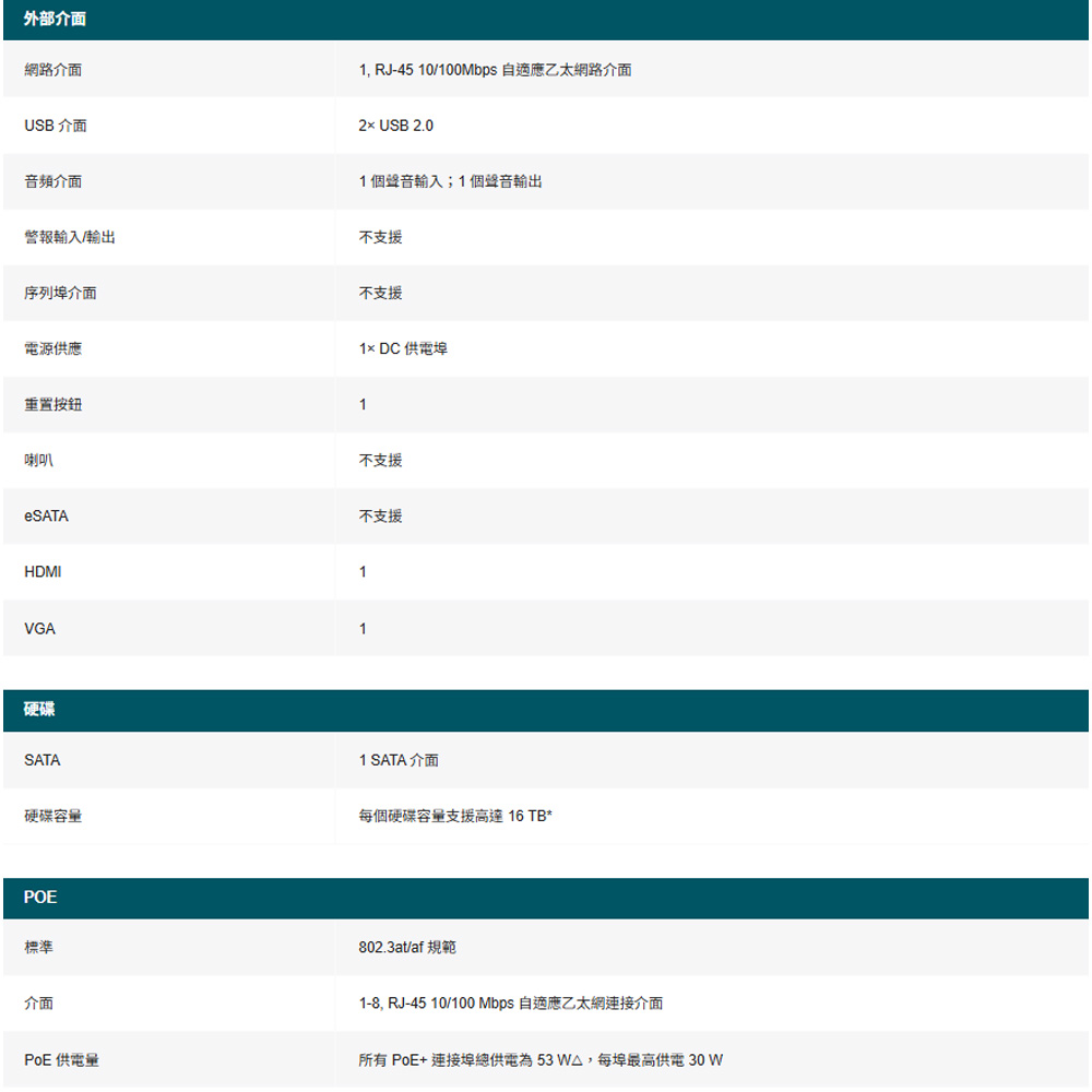 1 個 SATA介面,最高支援 16 TB *
