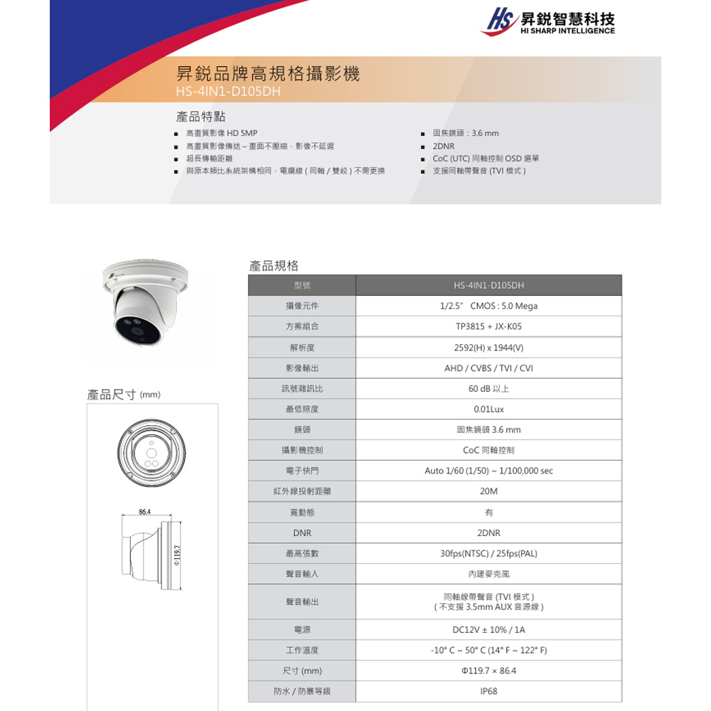 高畫質影像 HD 5MP
