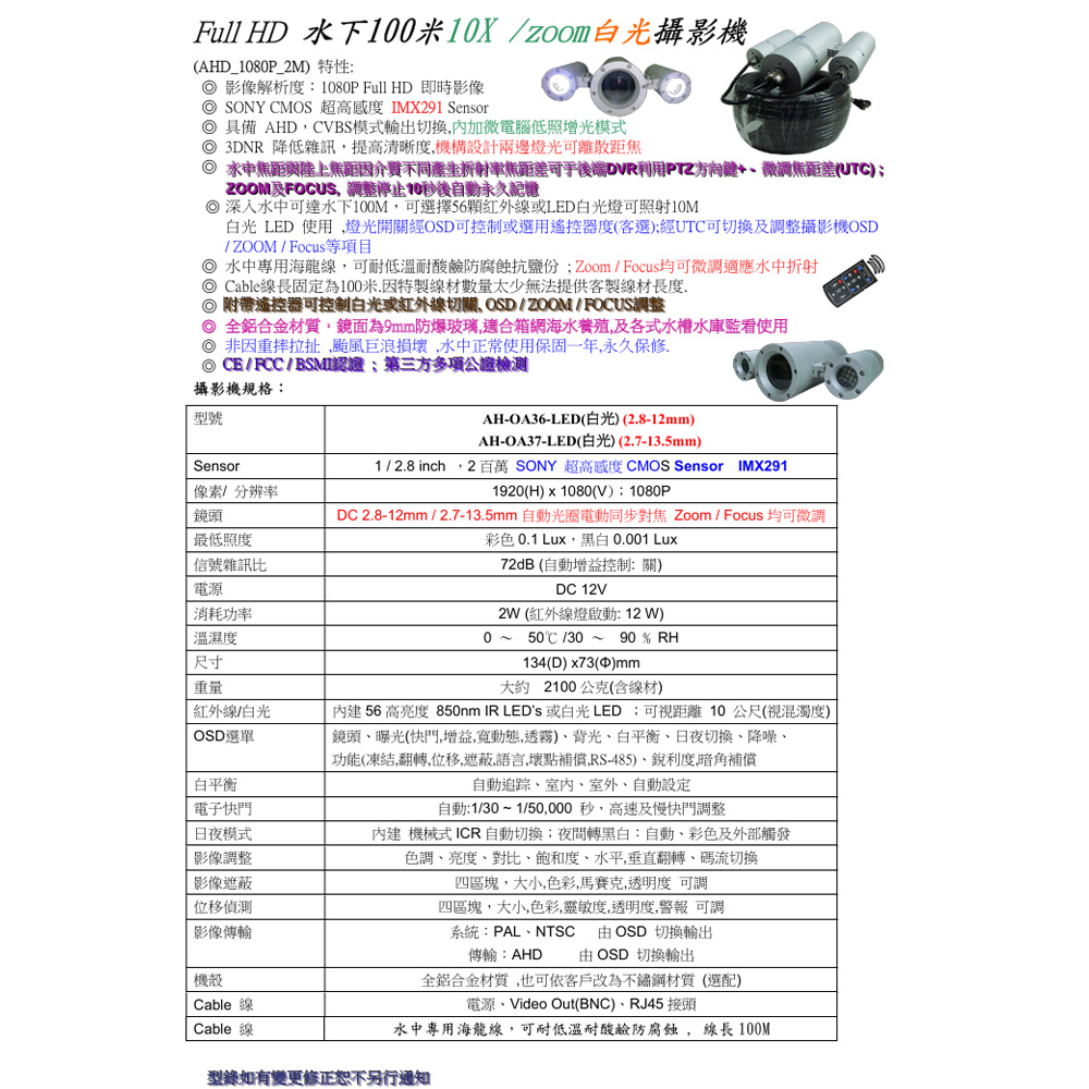 深入水中可達水下100M,可選擇56顆紅外線或LED白光燈可照射10M