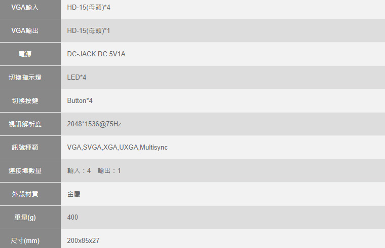 . 可將四組VGA顯示訊號來源共用一台顯示器節省使用空間