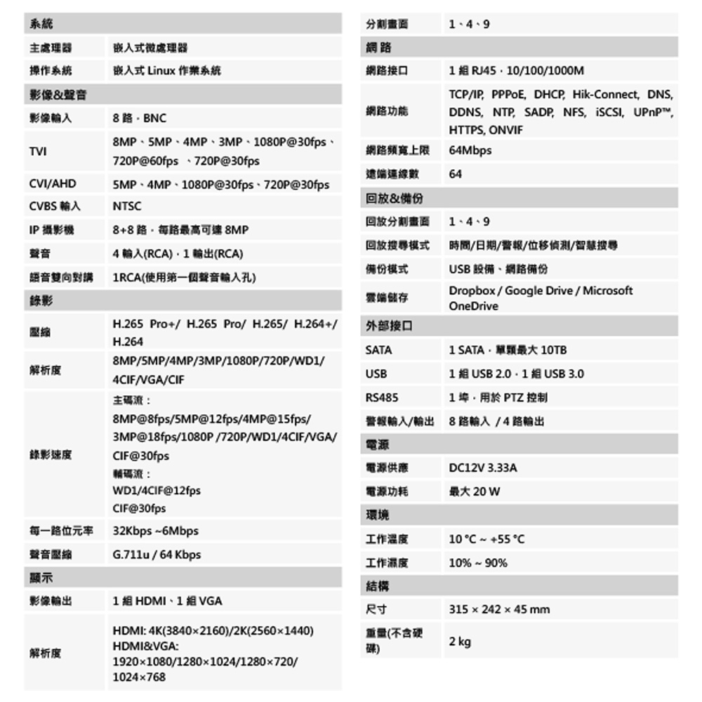 -支援TVI/AHD/CVI/CVBS/IP影像訊號輸入