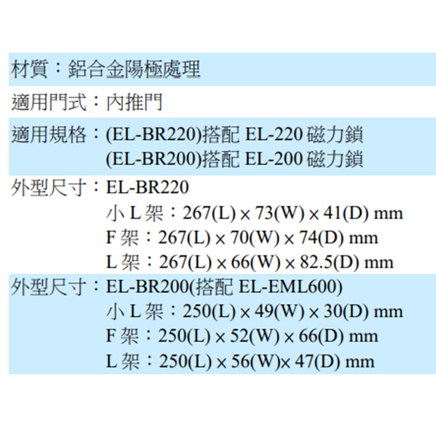 EL-BR220 磁力鎖輔助配件 L&Z型輔助架(1200磅用)