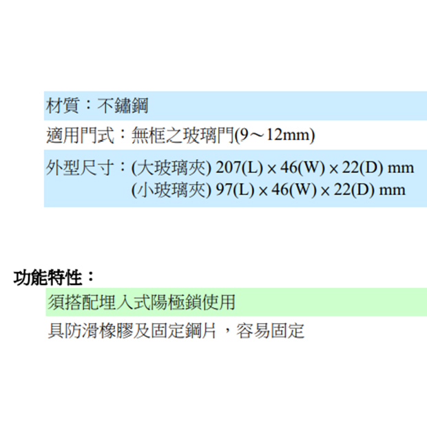 (大玻璃夾) 207(L)x46(W)x22(D) mm