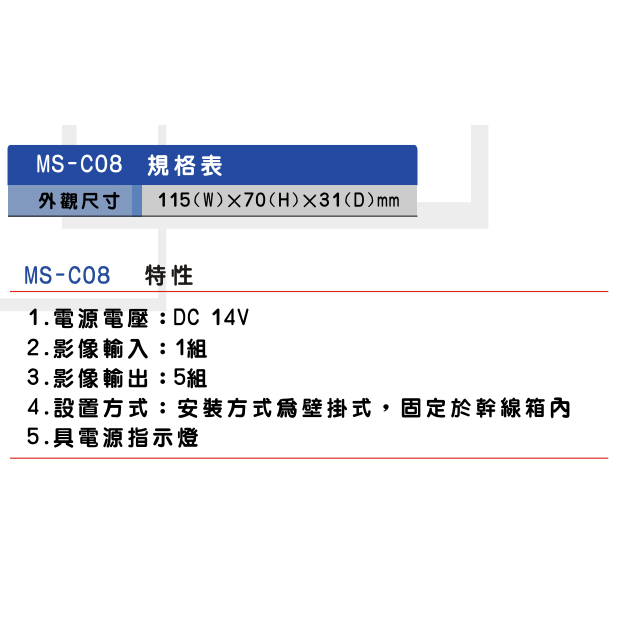 設置方式:安裝方式為壁掛式,固定於幹線箱內