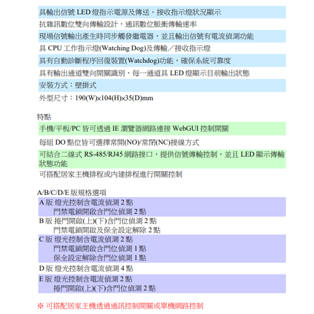 具有輸出通道雙向開關識別,每一通道具LED燈顯示目前輸出狀態