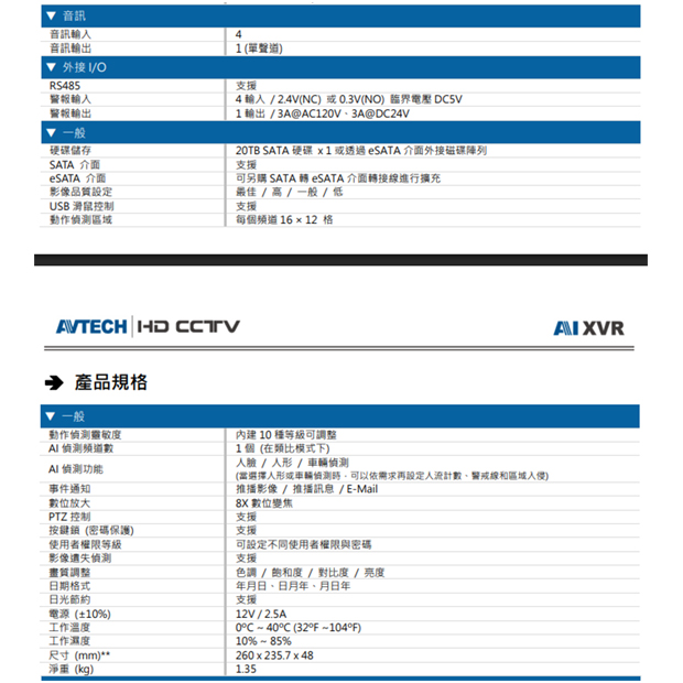 頻道:8 路 (支援 1 路AI)