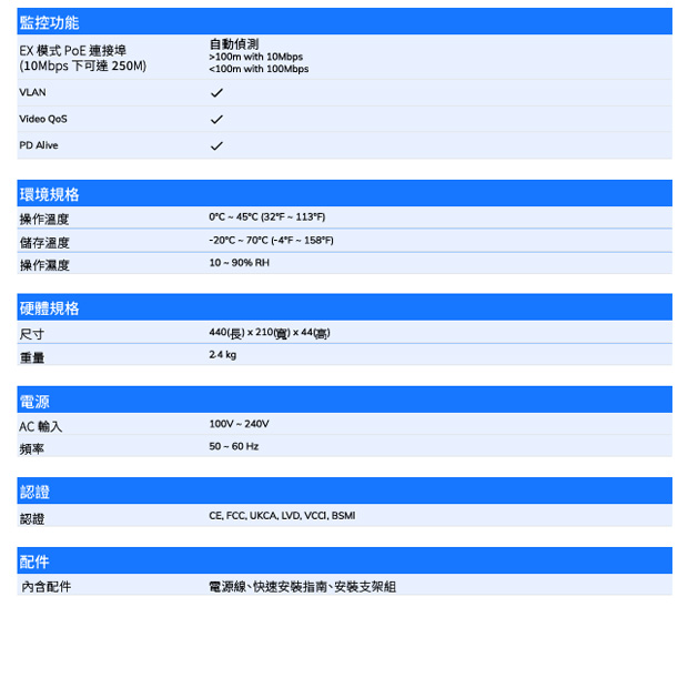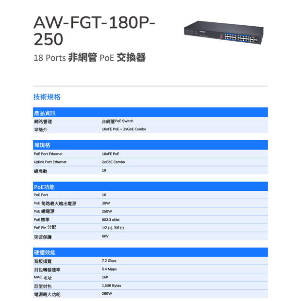 VIVOTEK AW-FGT-180P-250 18 埠非管理型 PoE 交換器