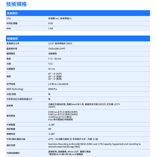 內建紅外線距離長達 100 公尺,搭載第二代智慧紅外線技術