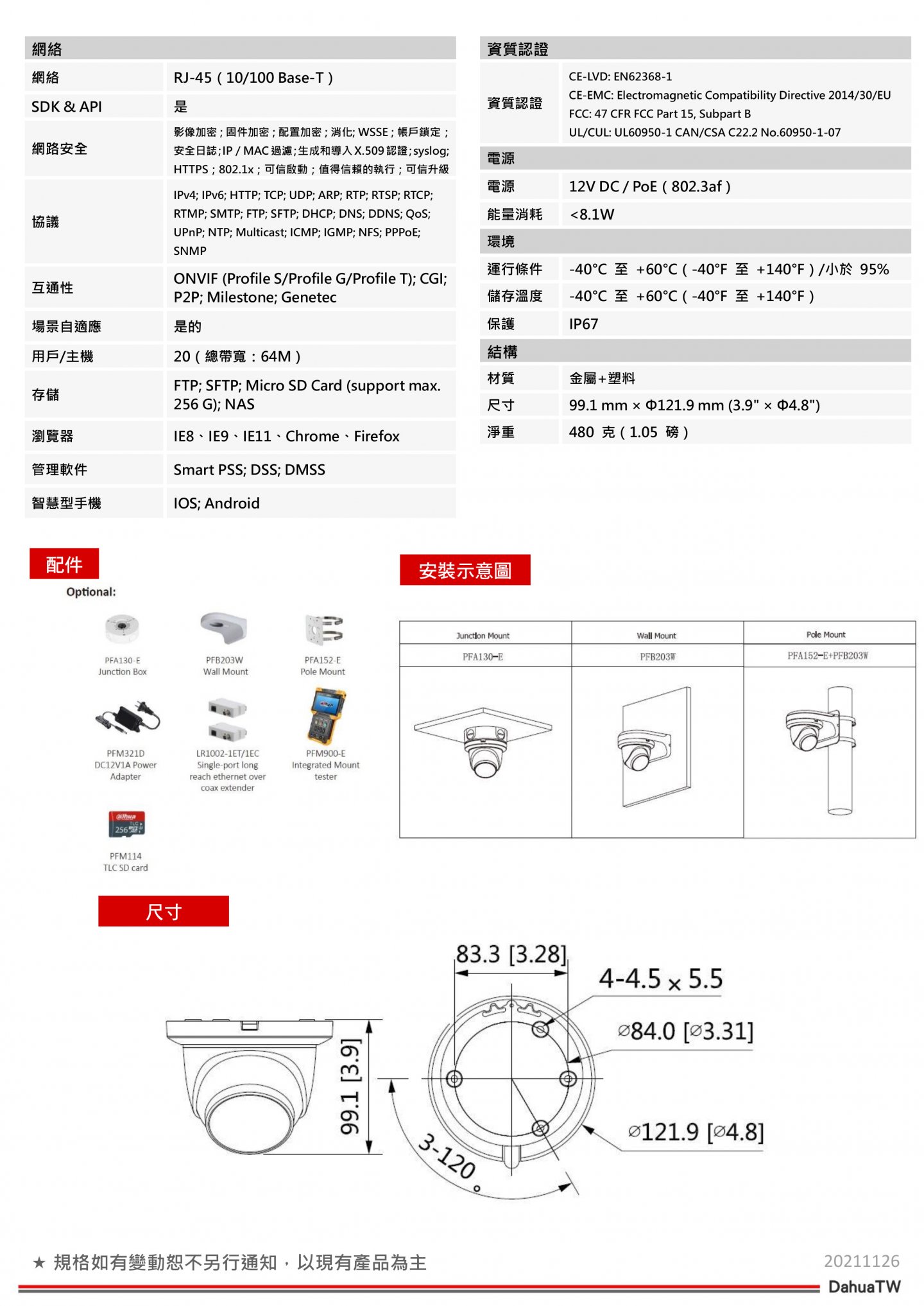 ▶ 內置紅外 LED,最大 紅外距離:50 m