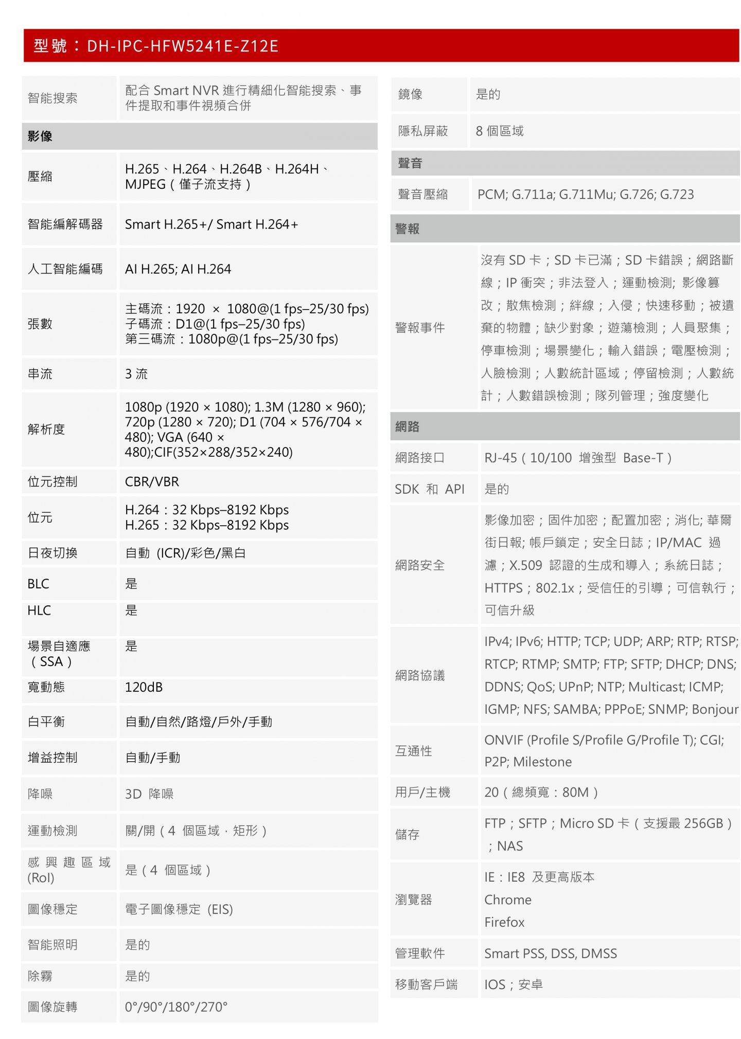 ROI、SVC、SMART H.264+/H.265+、AI H.264/H.265,濾波後編碼,編碼靈活,適用於各種頻寬和儲存環境