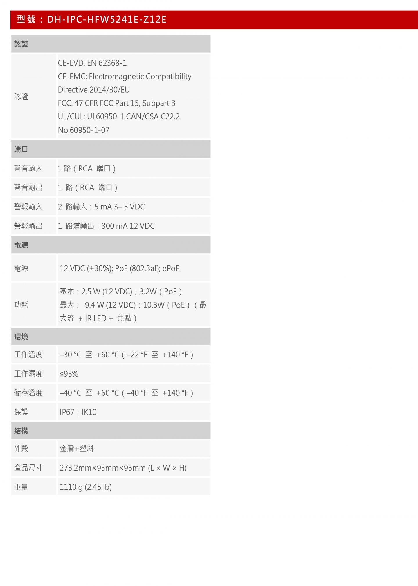 12VDC/PoE供電;ePoE,防護等級IP67、IK1,SMD3.0