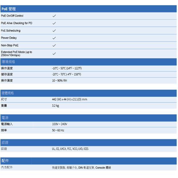 802.3 af/at/bt 混合、bt PoE 埠最高 90W