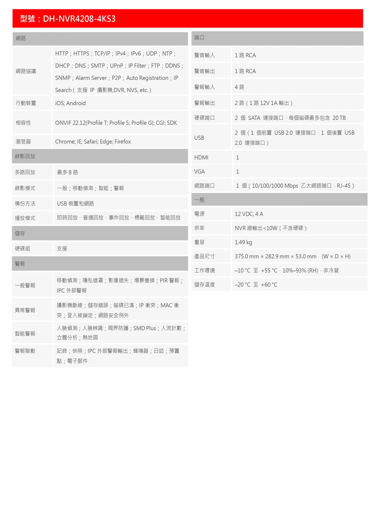 ⚫ AI 攝影機:支援人臉偵測與辨識、周界防護、SMD Plus、人流計數、立體分析和熱地圖