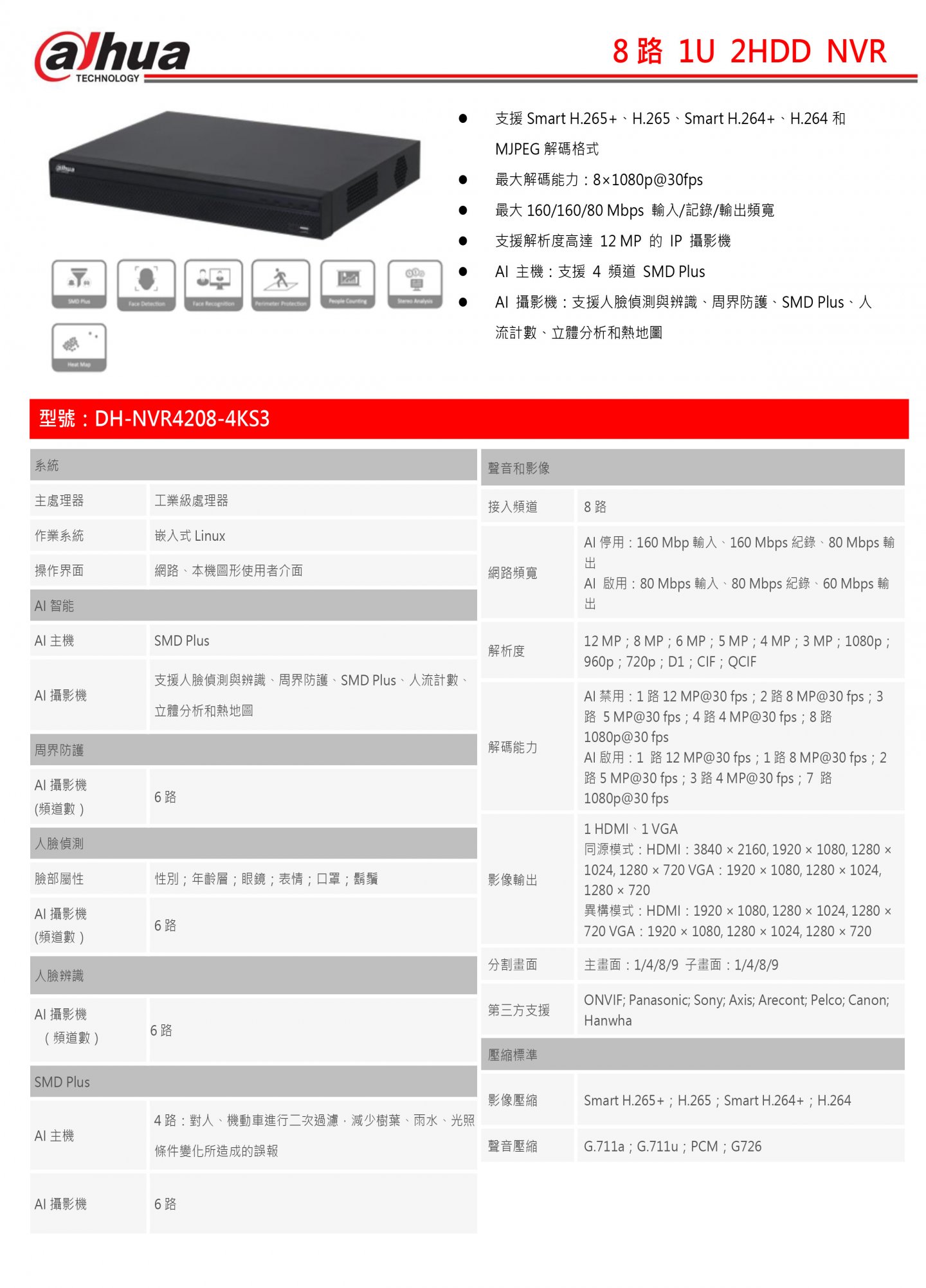 ⚫ AI 主機:支援 4 頻道 SMD Plus