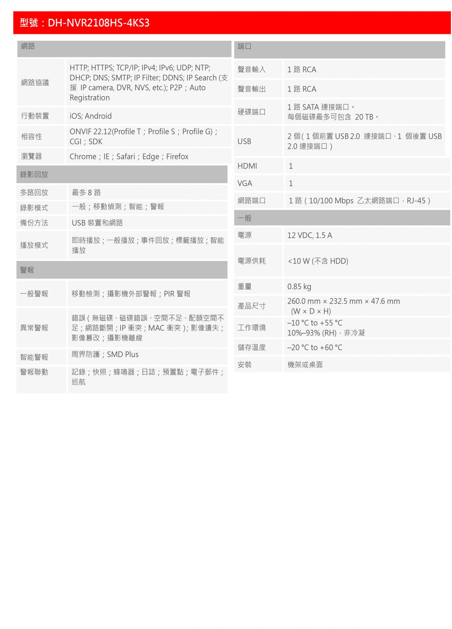 ⚫ 支援Smart H.265+、H.265、Smart H.264+、H.264和MJPEG解碼格式 ⚫ 最大解碼能力:6×1080p@30fps ⚫ 最大80/80/60 Mbps 輸入/記錄/輸出頻寬 ⚫ 支援解析度高達 12 MP 的 IP 攝影機 ⚫ AI主機支援 4 路 SMD Plus ⚫ AI攝影機支援周界防護和SMD Plus ⚫ 支援一鍵布撤防