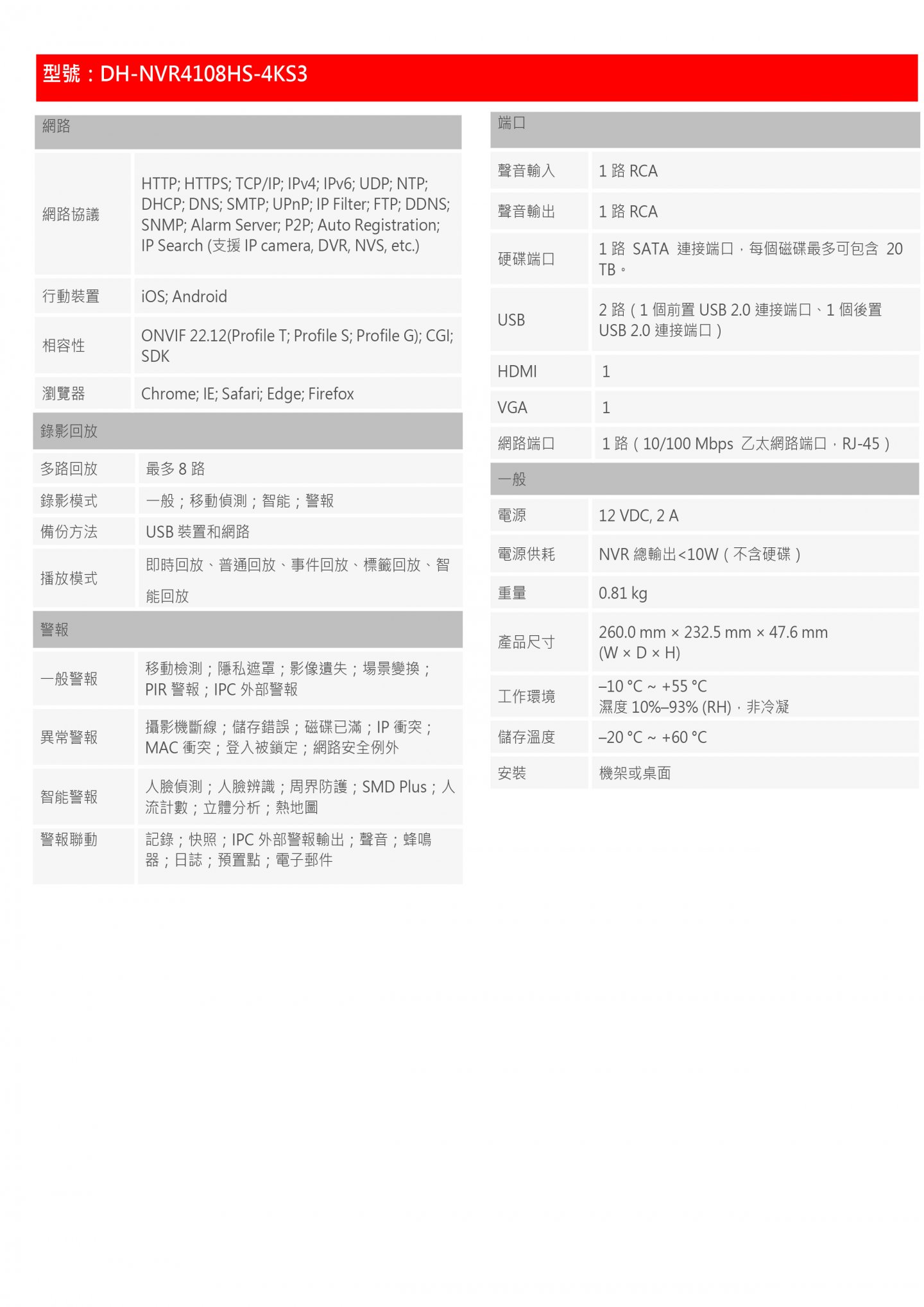 ⚫ 最大80/80/60 Mbps 輸入/記錄/輸出頻寬
