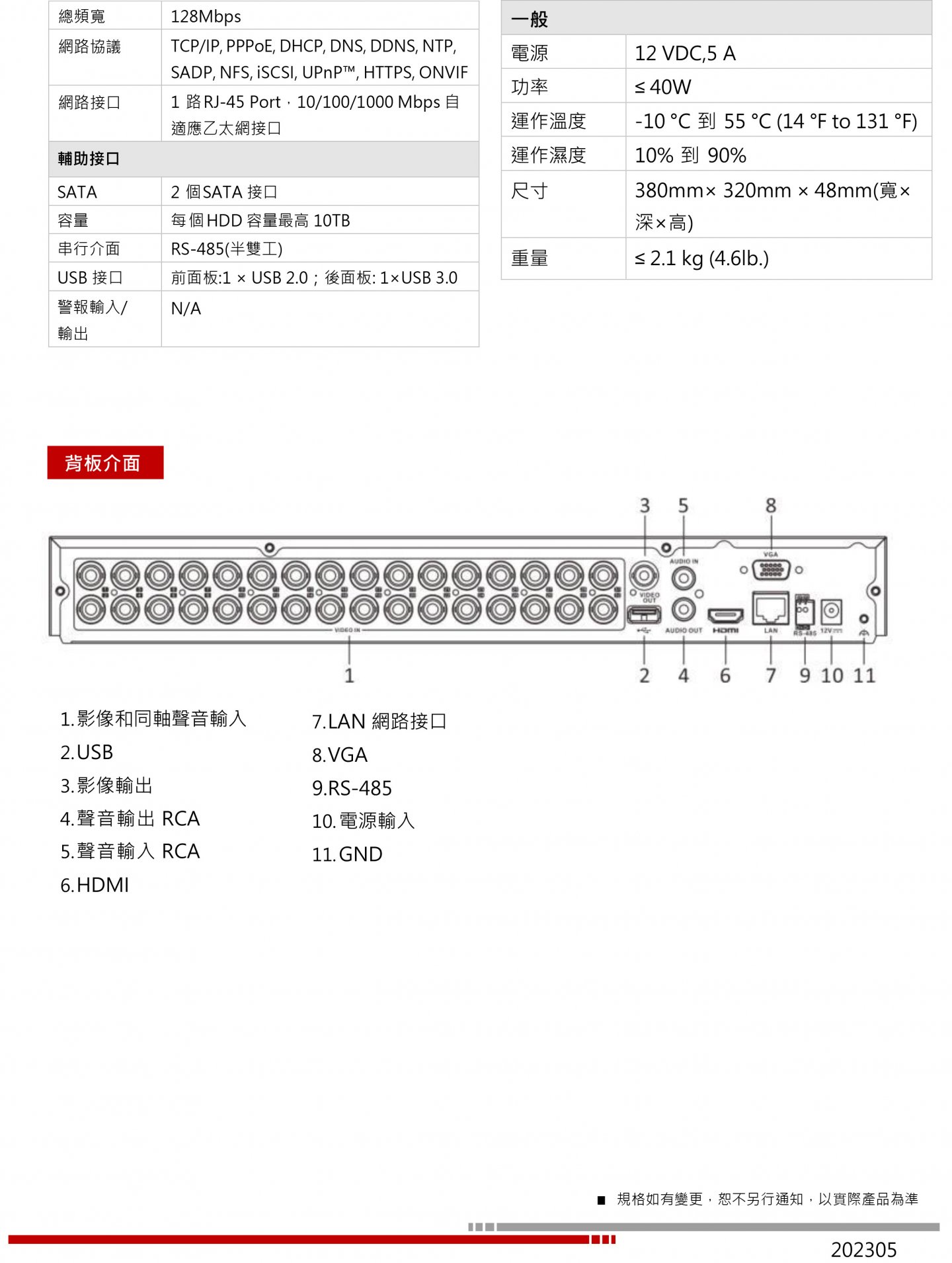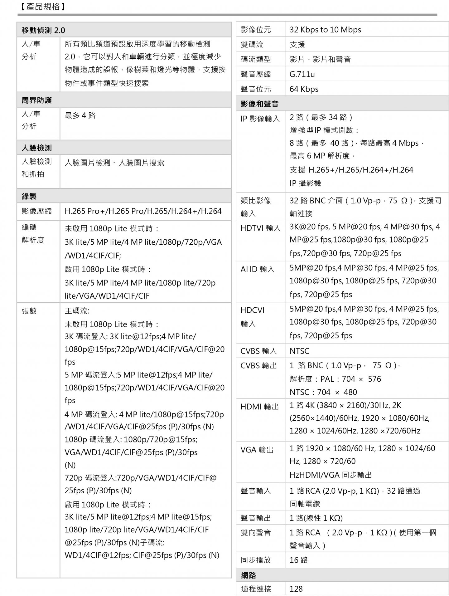 ⚫ HDTVI/AHD/CVI/CVBS/IP 影像輸入