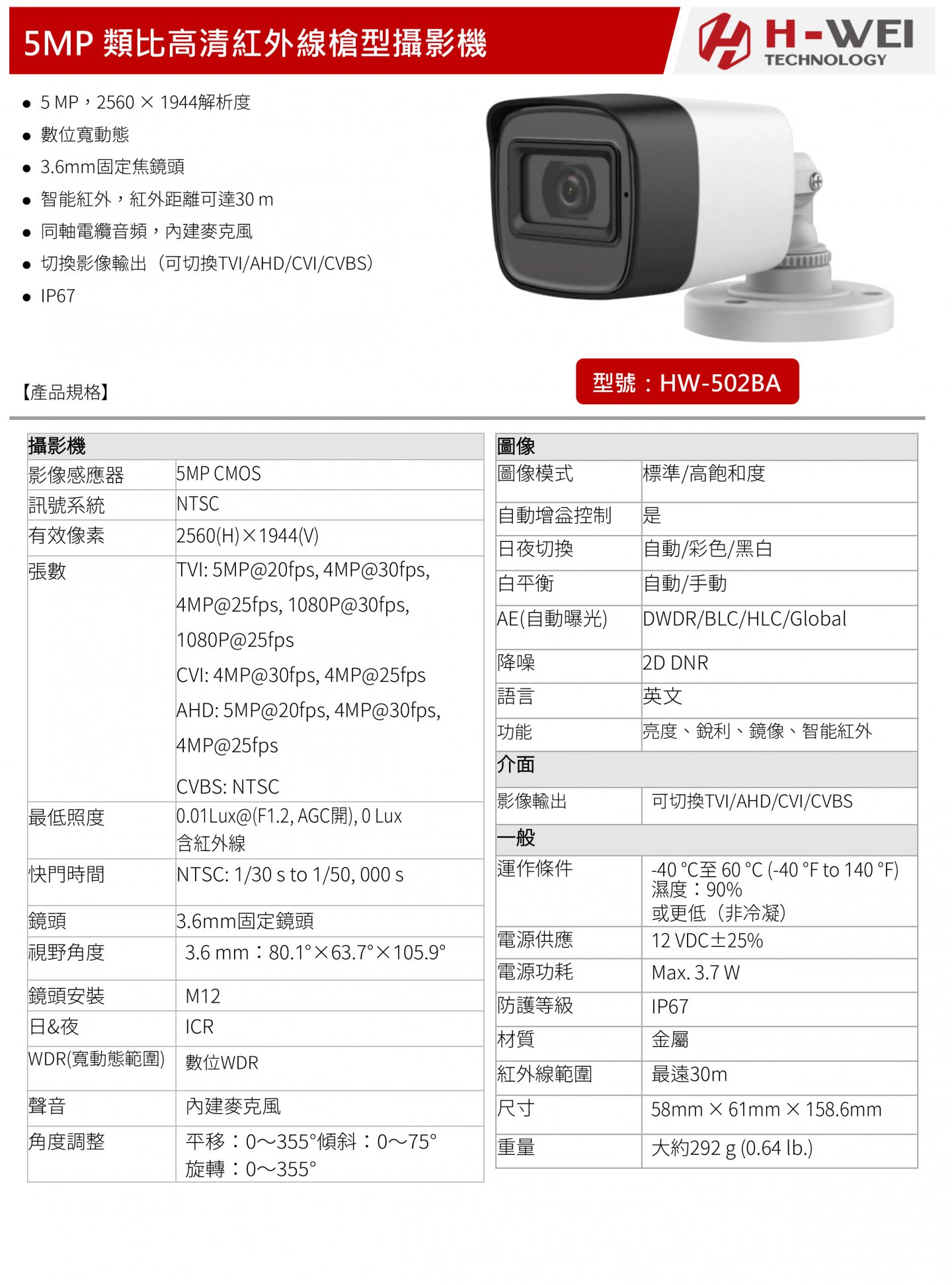 ● 5 MP,2560 × 1944解析度