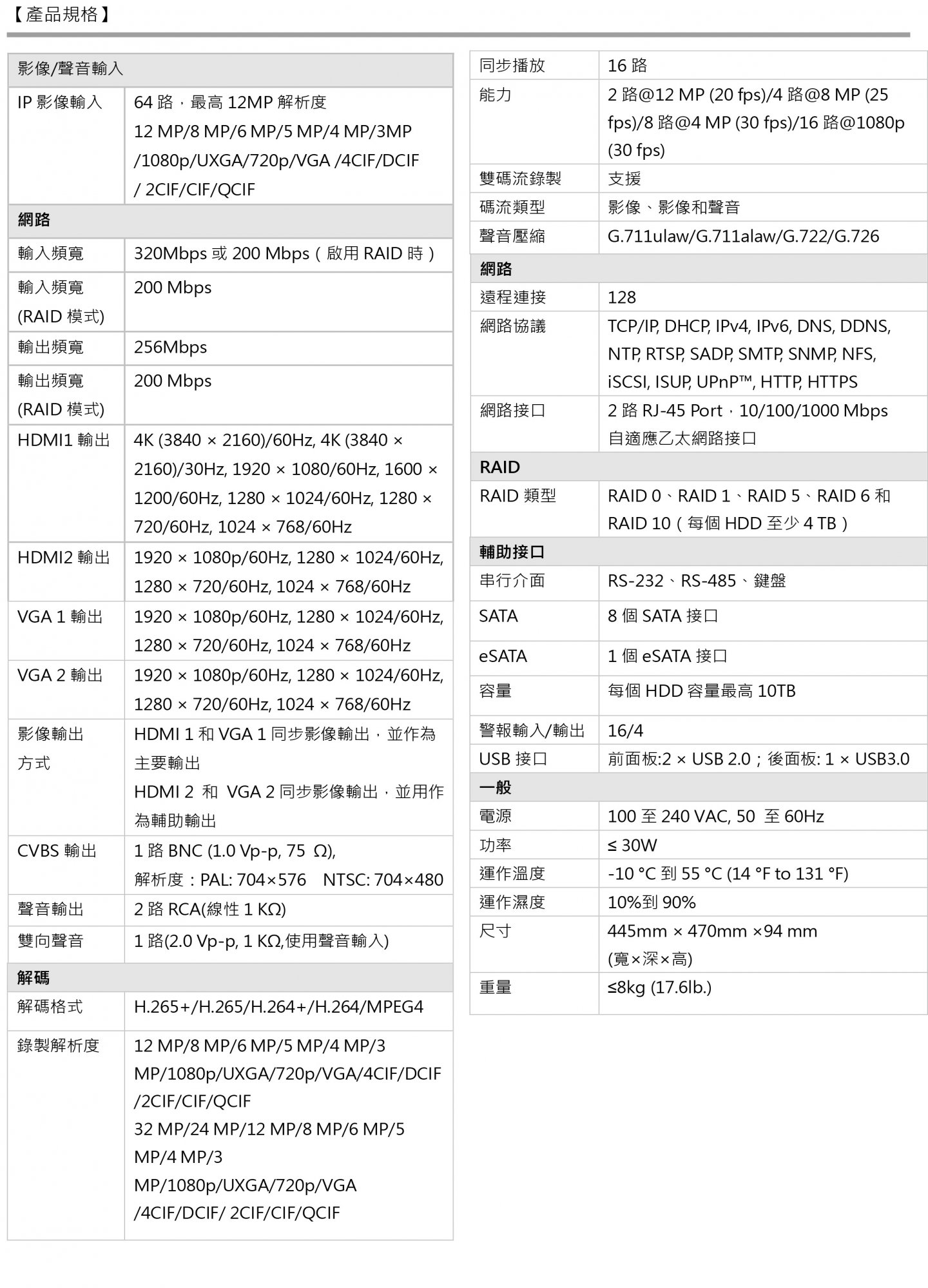 最多 64 路 IP 攝影機輸入