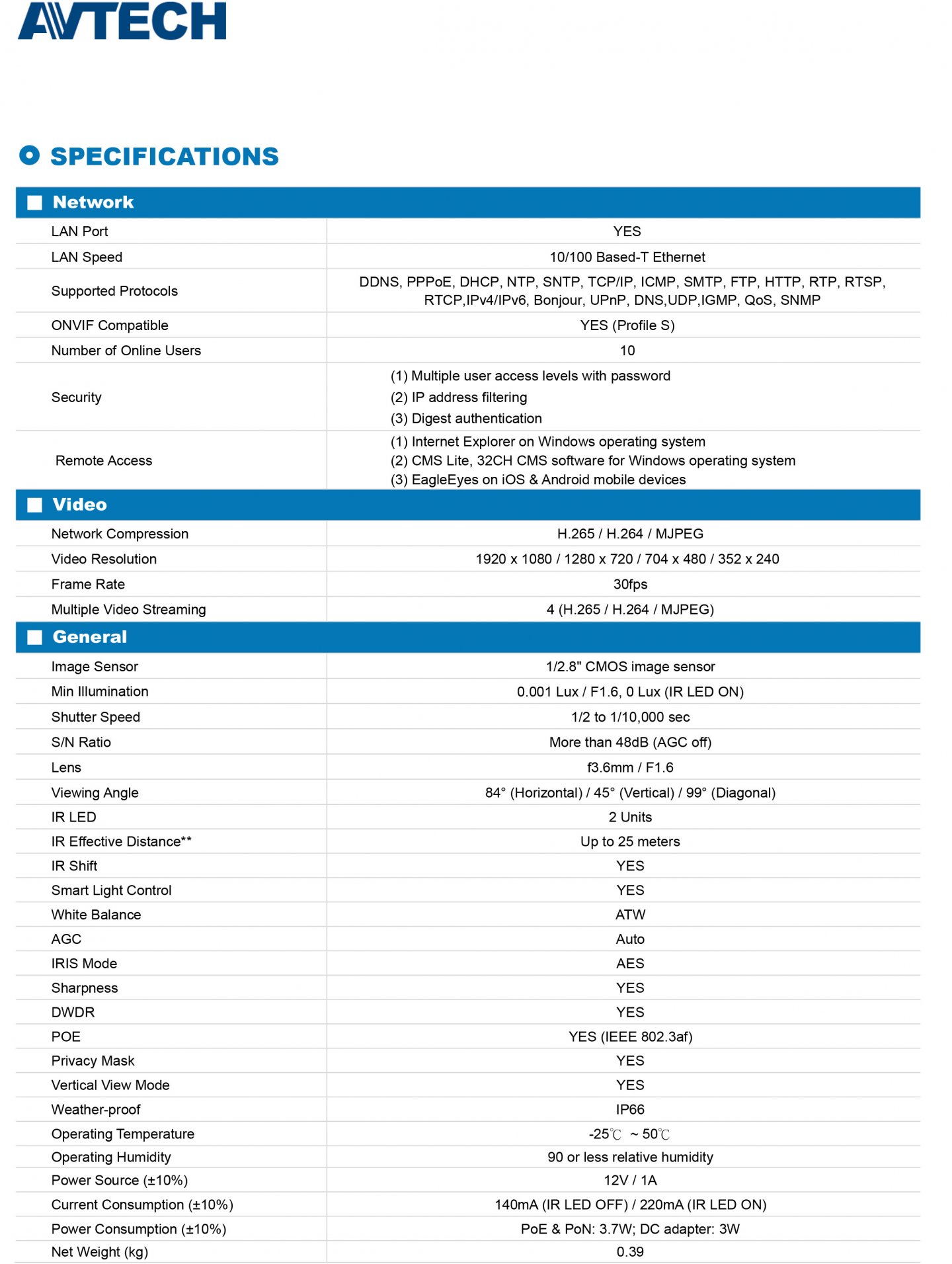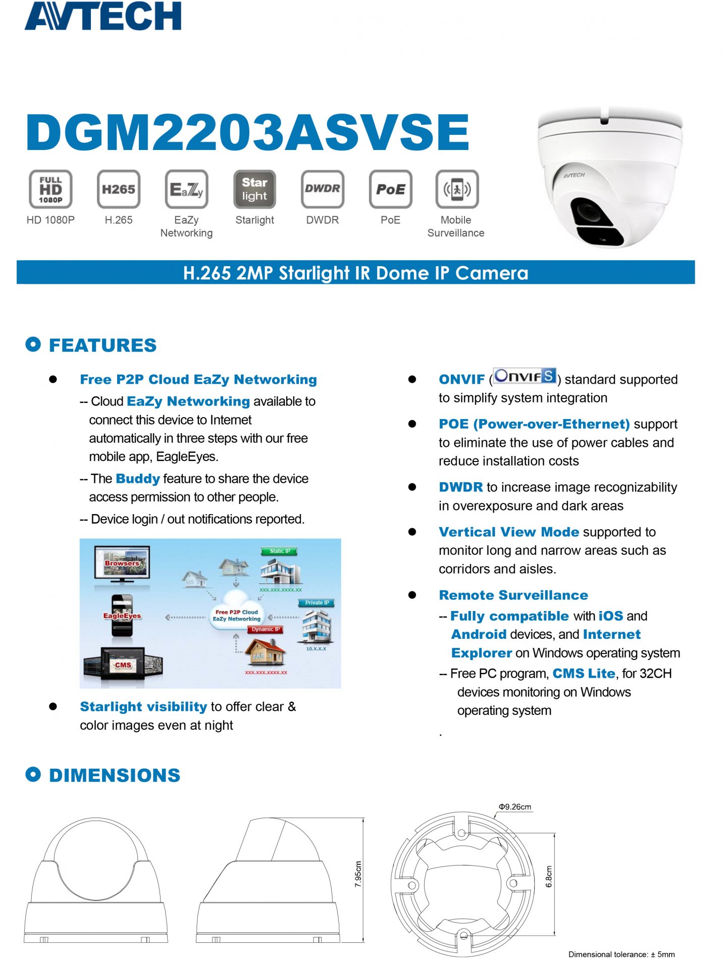 AVTECH 陞泰 DGM2203ASVSE H.265 2MP網路攝影機