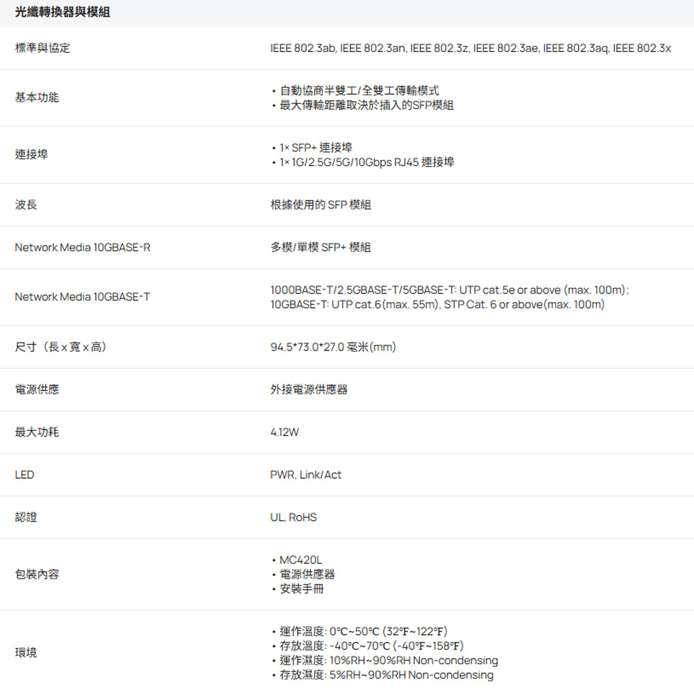 1× 1G/2.5G/5G/10Gbps Auto-Negotiation RJ45 連接埠支援 Auto-MDI/MDIX