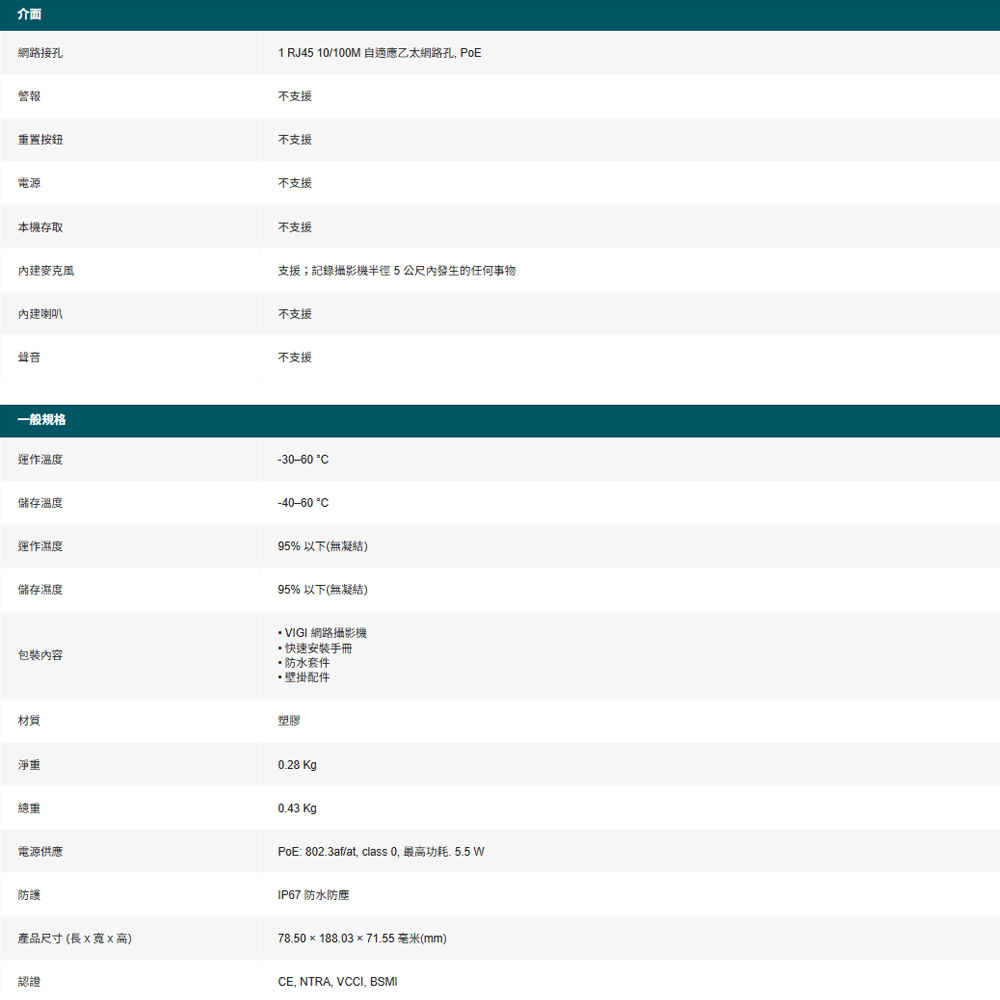 TP-LINK VIGI C320IV1.20(C320I V1.20) VIGI 2MP 戶外紅外線槍型監視器/商用網路監控攝影機