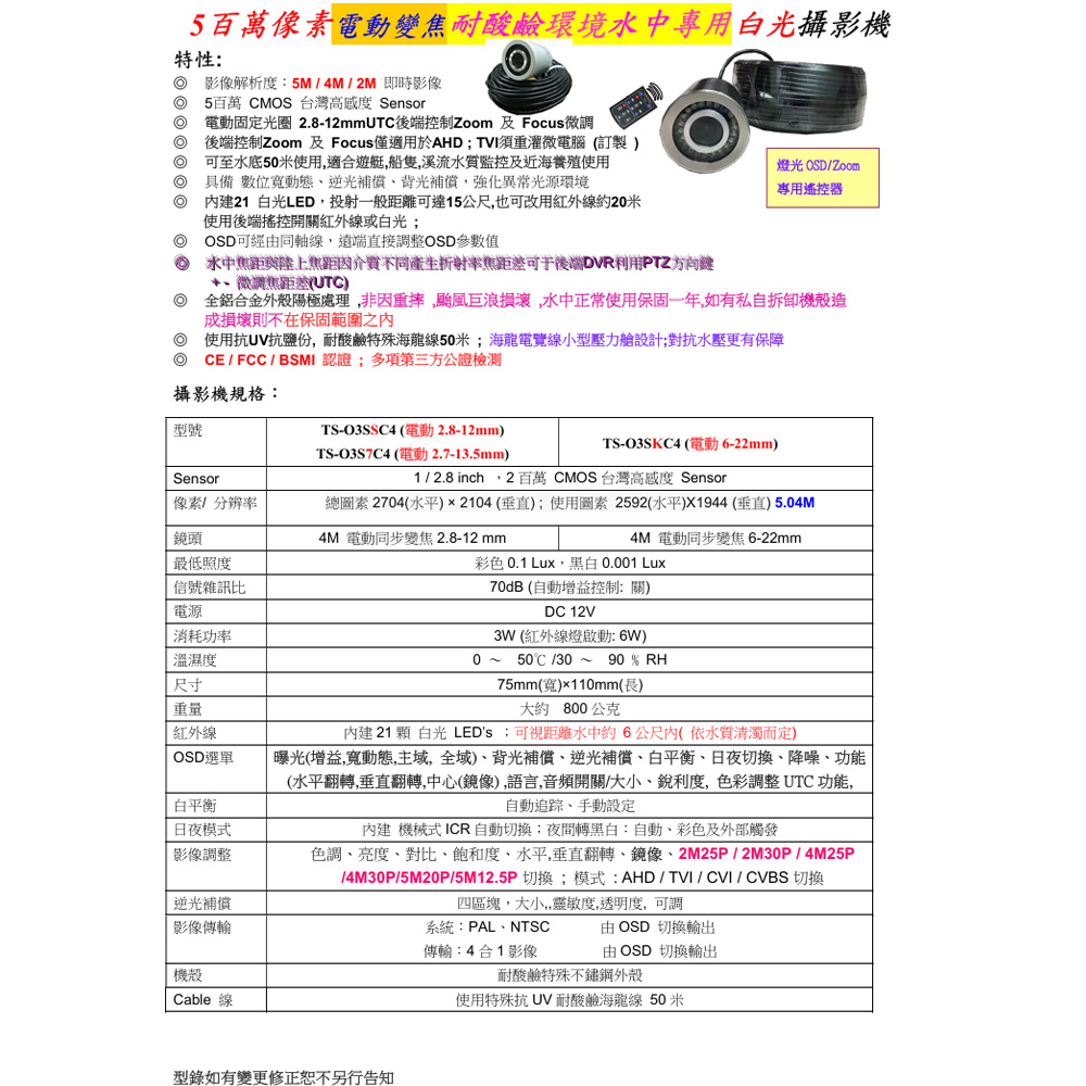 後端控制Zoom 及 Focus僅適用於AHD ; TVI須重灌微電腦 (訂製 )