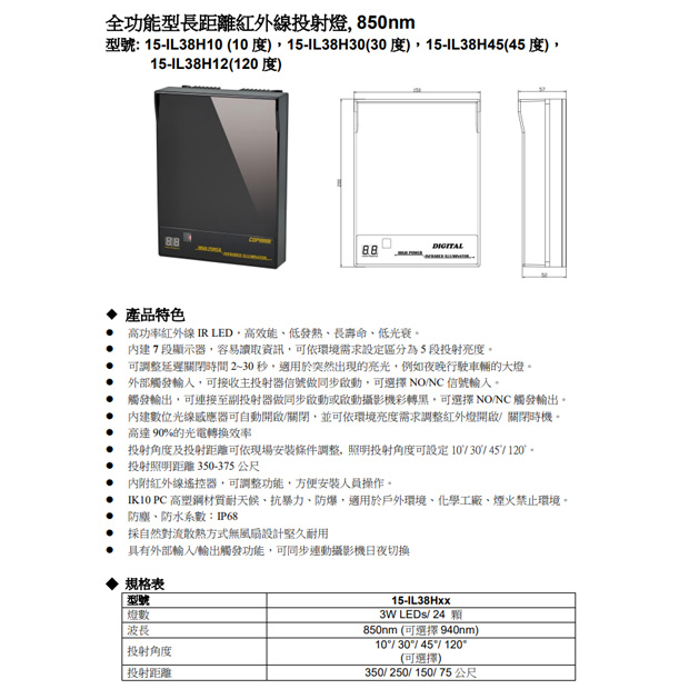 • 15-IL38H30  全功能型長距離紅外線投射燈 30度