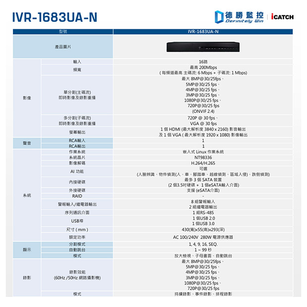 ▪ 最多支援 2 顆內接硬碟錄影