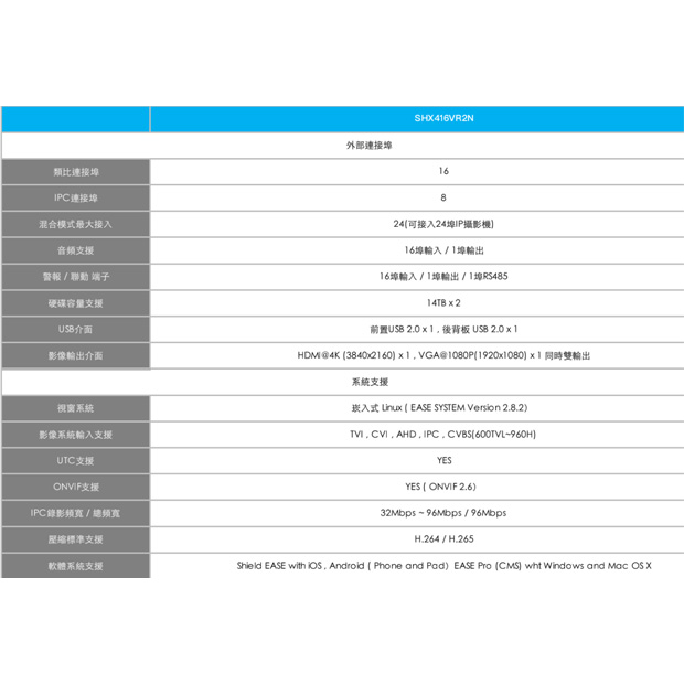 支援AHD/TVI/CVI/CVBS/IPC視訊系統