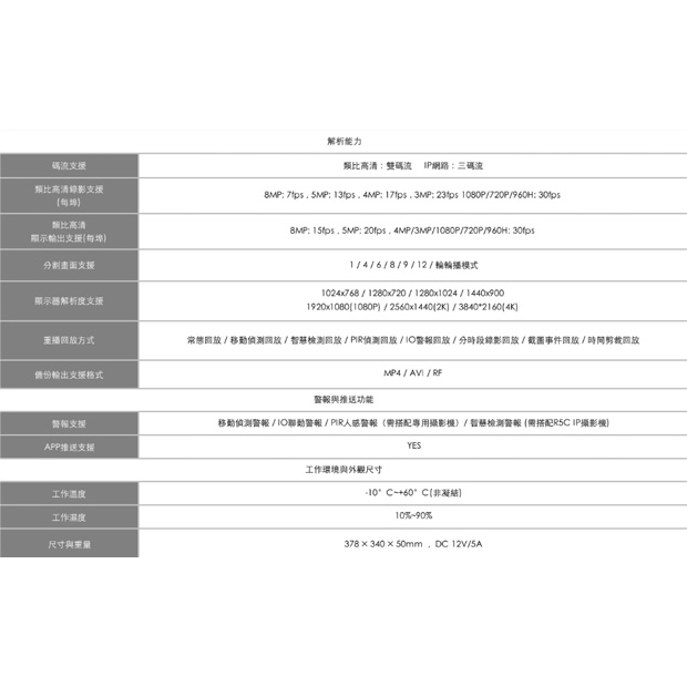支援AHD/TVI/CVI/CVBS/IPC視訊系統