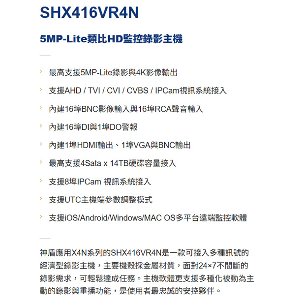 支援AHD/TVI/CVI/CVBS/IPC視訊系統