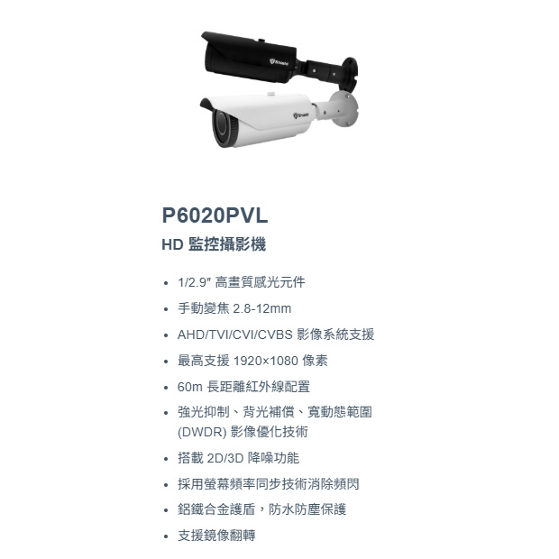 • 神盾 P6020PVL 手動變焦 1080P HD 監控攝影機 1